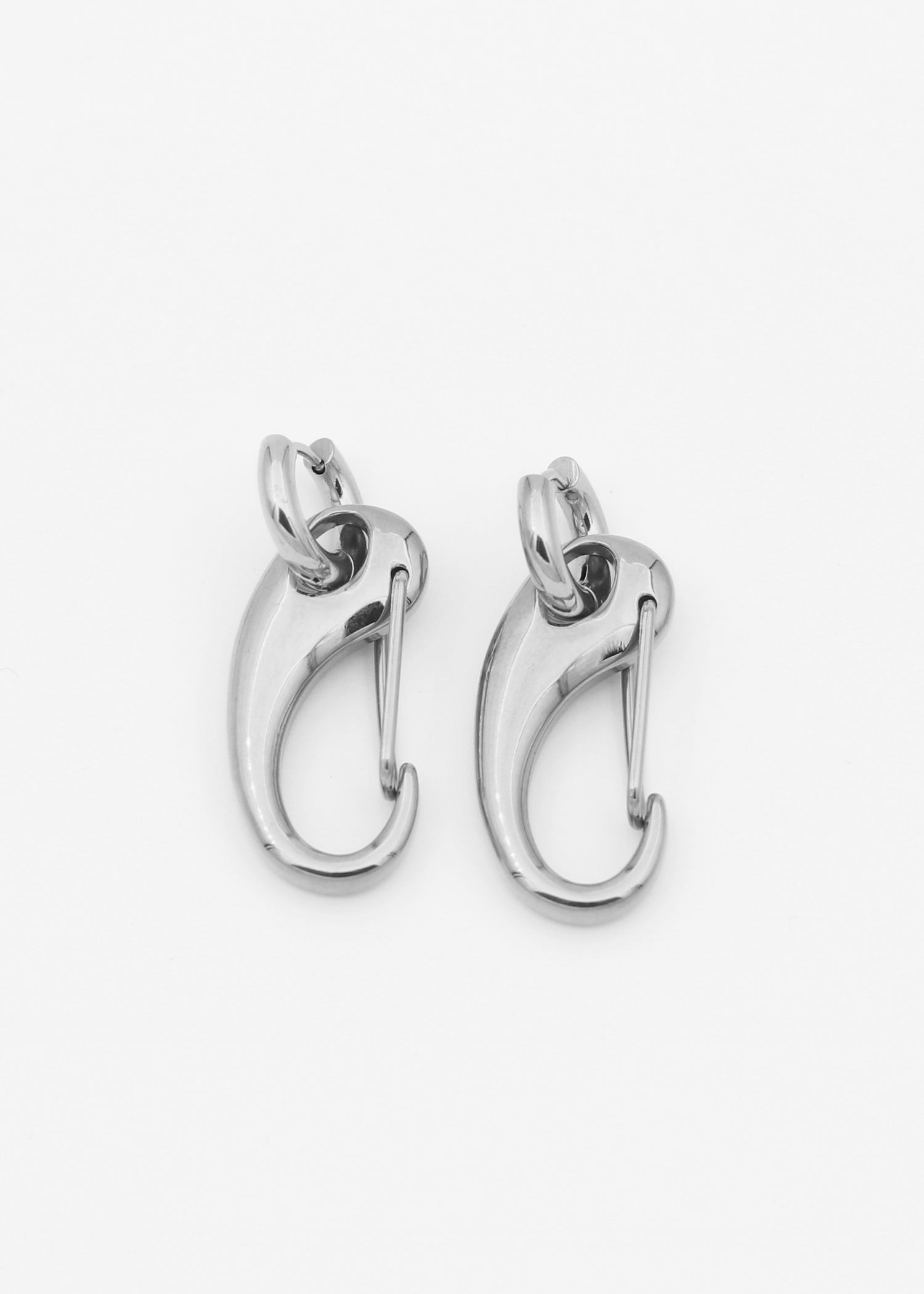 Carabiner Silver Hoop Earrings are made of of water-resistant stainless steel. They are the perfect base for mixing and matching with Medi Charms in all colors. You can wear them in multiple ways, and also wear the mini Hoops seperately without the Carabiner or with a different charm. With these classic favorites, you can build a personalized earparty that will remain timeless and stylish.