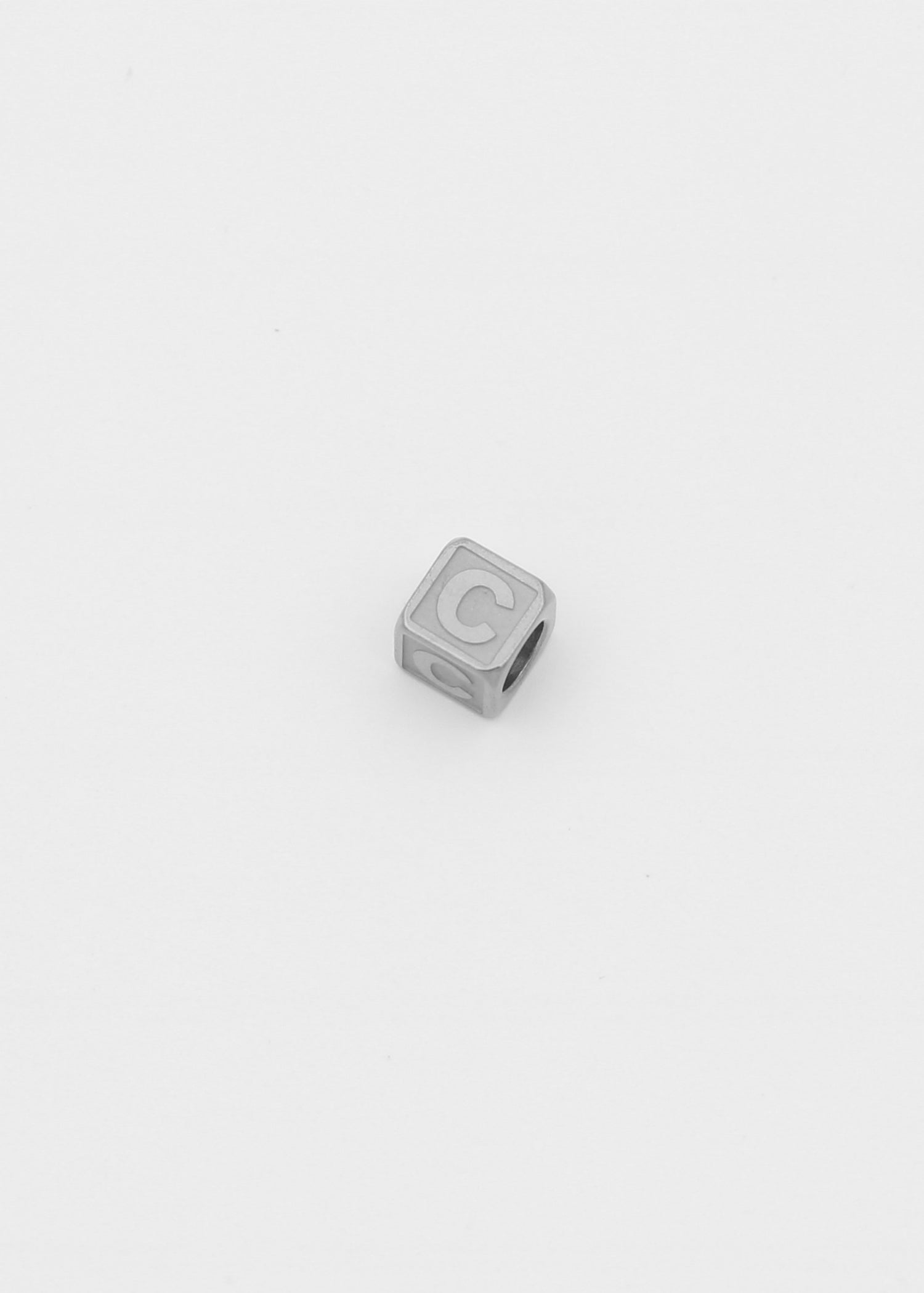 This Initial Dice is a versatile accessory designed to enhance your style. Crafted from durable water-resistant stainless steel with a silver-plated finish. Perfect to wear on a necklace chain, attach to a bagcharm, or pair with hoop earrings, it adds a personal touch wherever you choose to wear it.