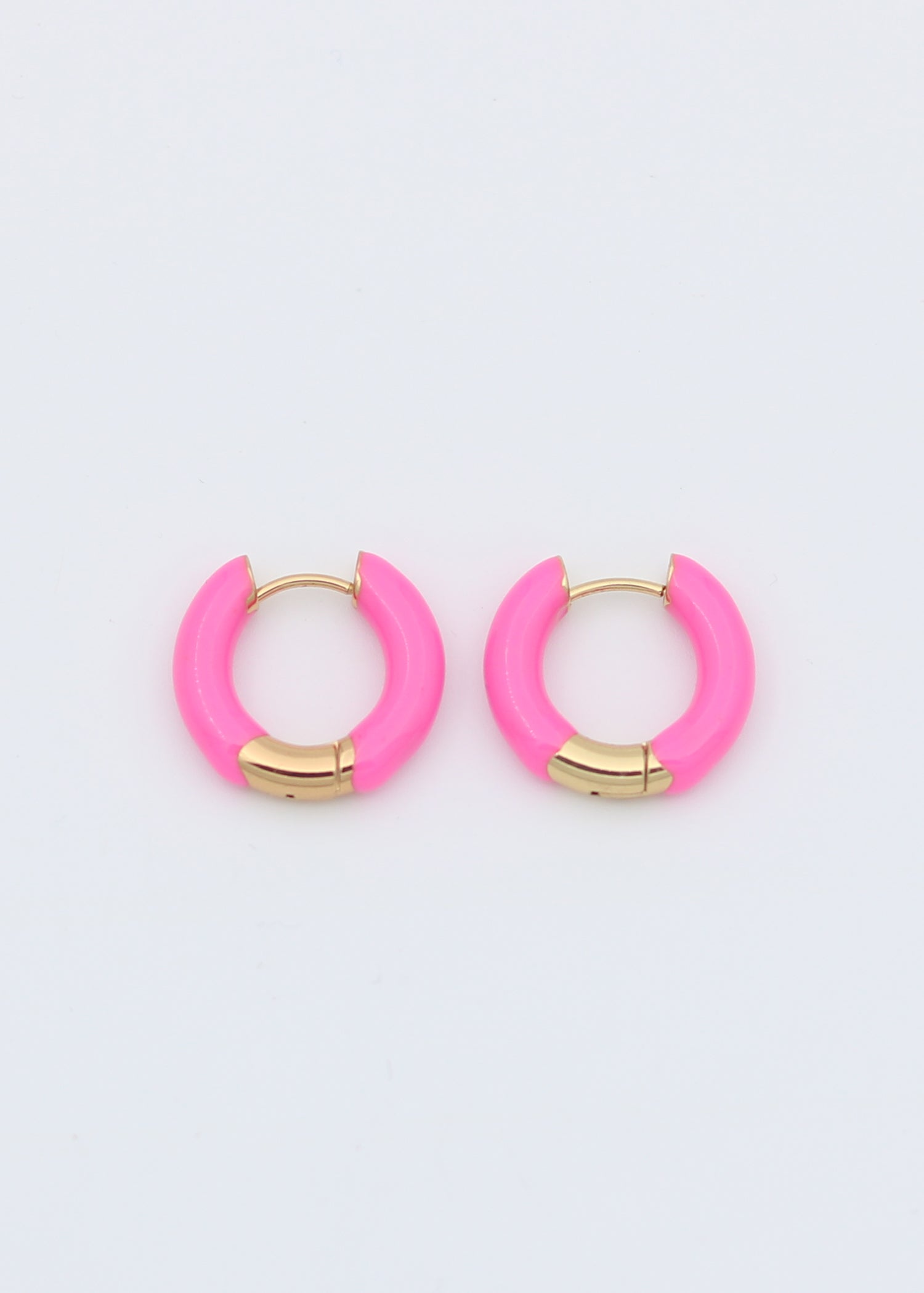 The Pink Enamel Chunky Hoop Earrings are made of water-resistant stainless steel dipped in a Enamel Colorbath. They make the perfect foundation for mixing and matching with Charms in a variety of sizes, shapes, and colors. With these Chunky Hoops, you can create a personalized and timeless earparty.