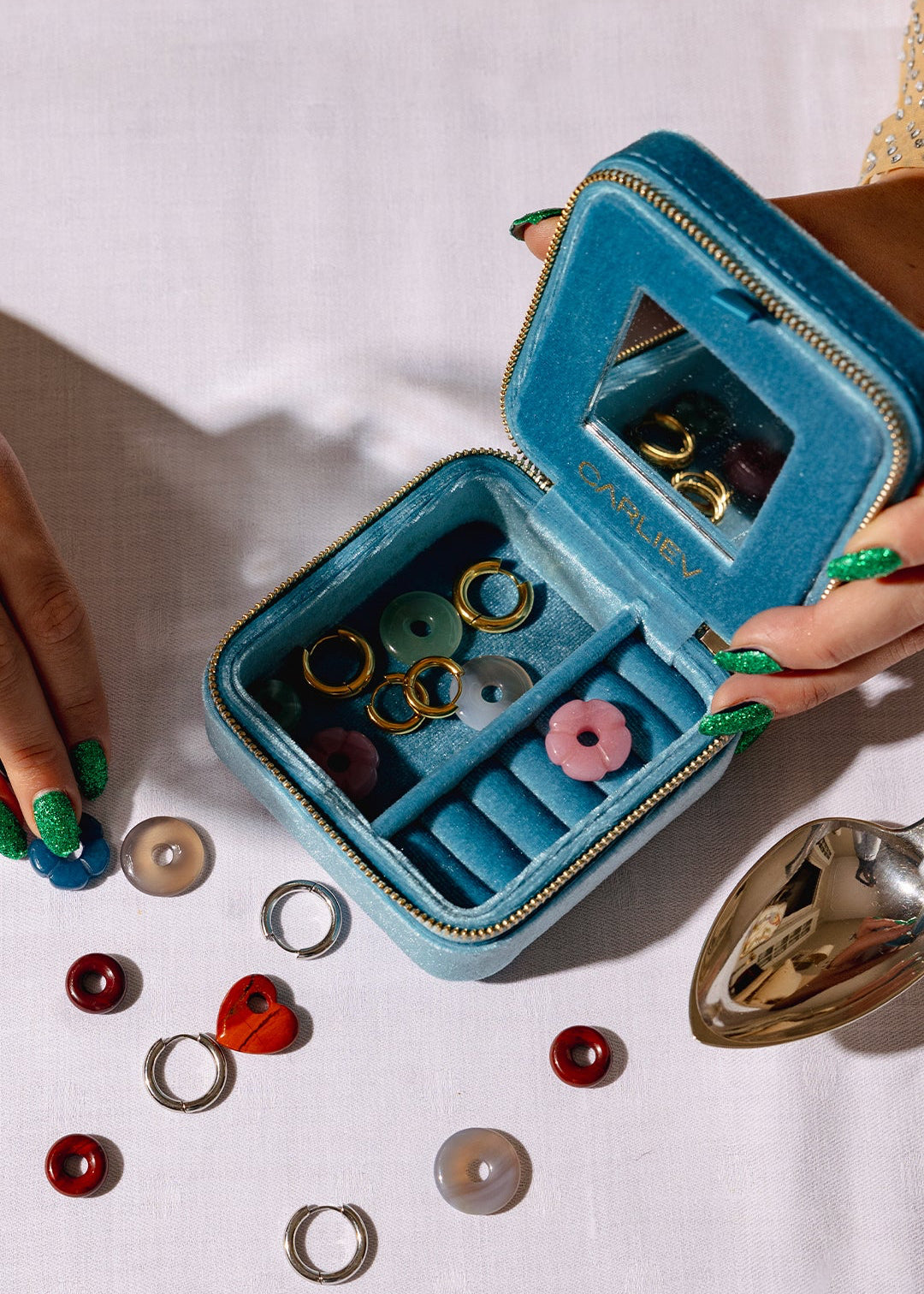 Keep your precious pieces safe and stylish on the go with this stunning blue velvet travel box. Perfect for protecting your favorite jewelry while adding a pop of color to your luggage or carry-on. Whether you're traveling or just heading to the office, this chic organizer ensures your accessories arrive looking flawless every time.
